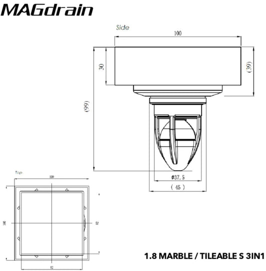 MAGdrain Q50 2mm Marble Insert Floor Trap Art. MDSEA001Q50-21 100 x 100mm