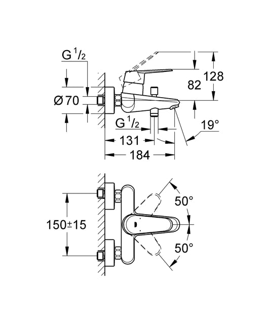 Grohe BauEdge Single Lever Bath/ Shower Mixer Art. 29039000