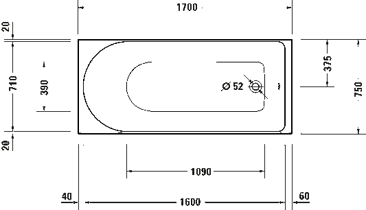 Duravit D-Neo Acrylic Built-in Bathtub 1700 x 750mm Art. 700479 + 790127