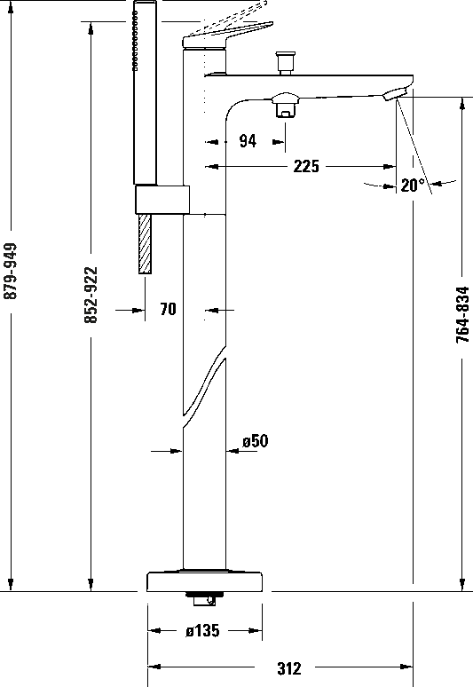 *Brushed Stainless Steel* Duravit Freestanding Bath Mixer Art. WA5250000A70 + GK5900008A00