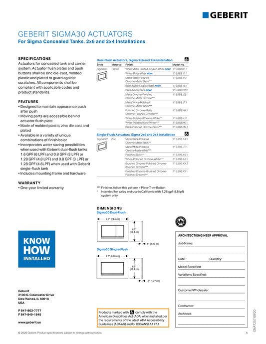 Geberit Sigma30 Flush Actuator Plate Art. 115.883.16.1