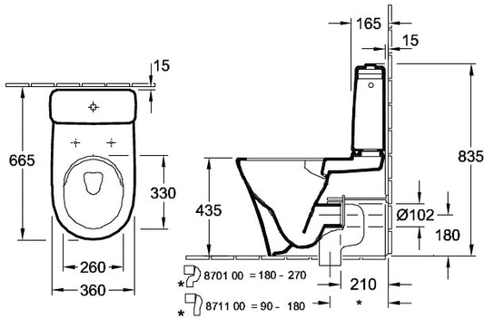 Villeroy & Boch "O.Novo" RIMLESS Close Coupled WC Art. 4606F201 + 5758R101101 + 9M38S101