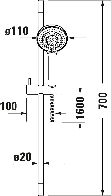 *Matte Black* Duravit Shower Rail 900mm Art. UV0600004046