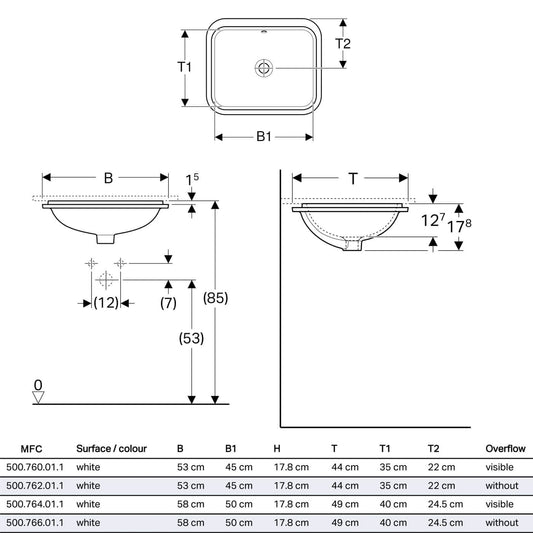 Geberit "Variform" Rectangular Undercounter Basin Art. 500.764.01.2/ 502.291.01.1