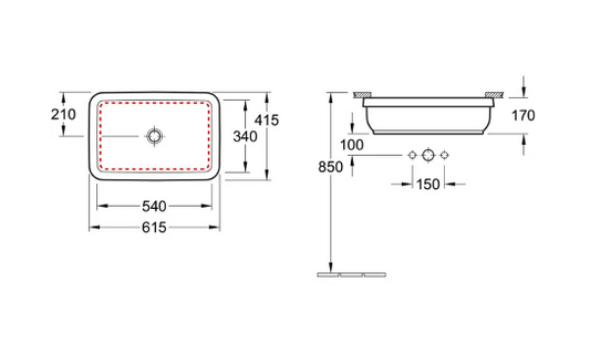 Villeroy & Boch "Lunea" Undercounter Rectangular Basin Art. 51225301