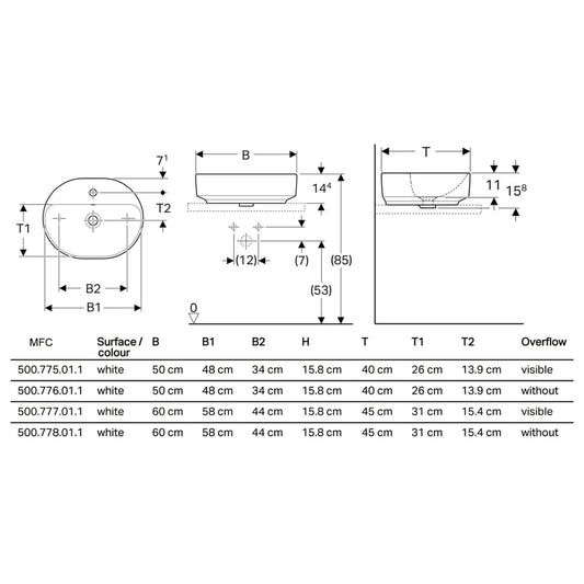 Geberit "Variform" Elliptic Lay-on Basin Art. 500.775.01.2