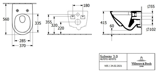 Villeroy & Boch "Subway 3.0" Wall Hung WC Art. 4670T001 + 8M42S101