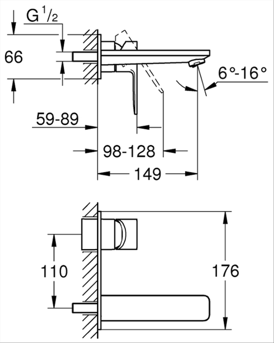 Grohe Lineare Wall Mount Basin Mixer (M Size) Art. 19409001 + Art. 23571000