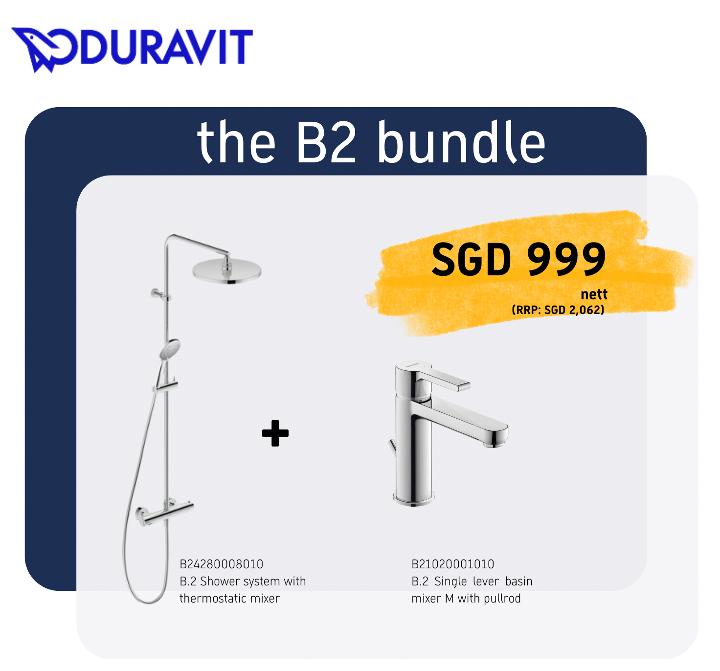 *B.2 BUNDLE* Duravit B2 Thermostatic Shower System 2 Way Art. B24280008010 + B2 M Basin Mixer Art. B21020001010