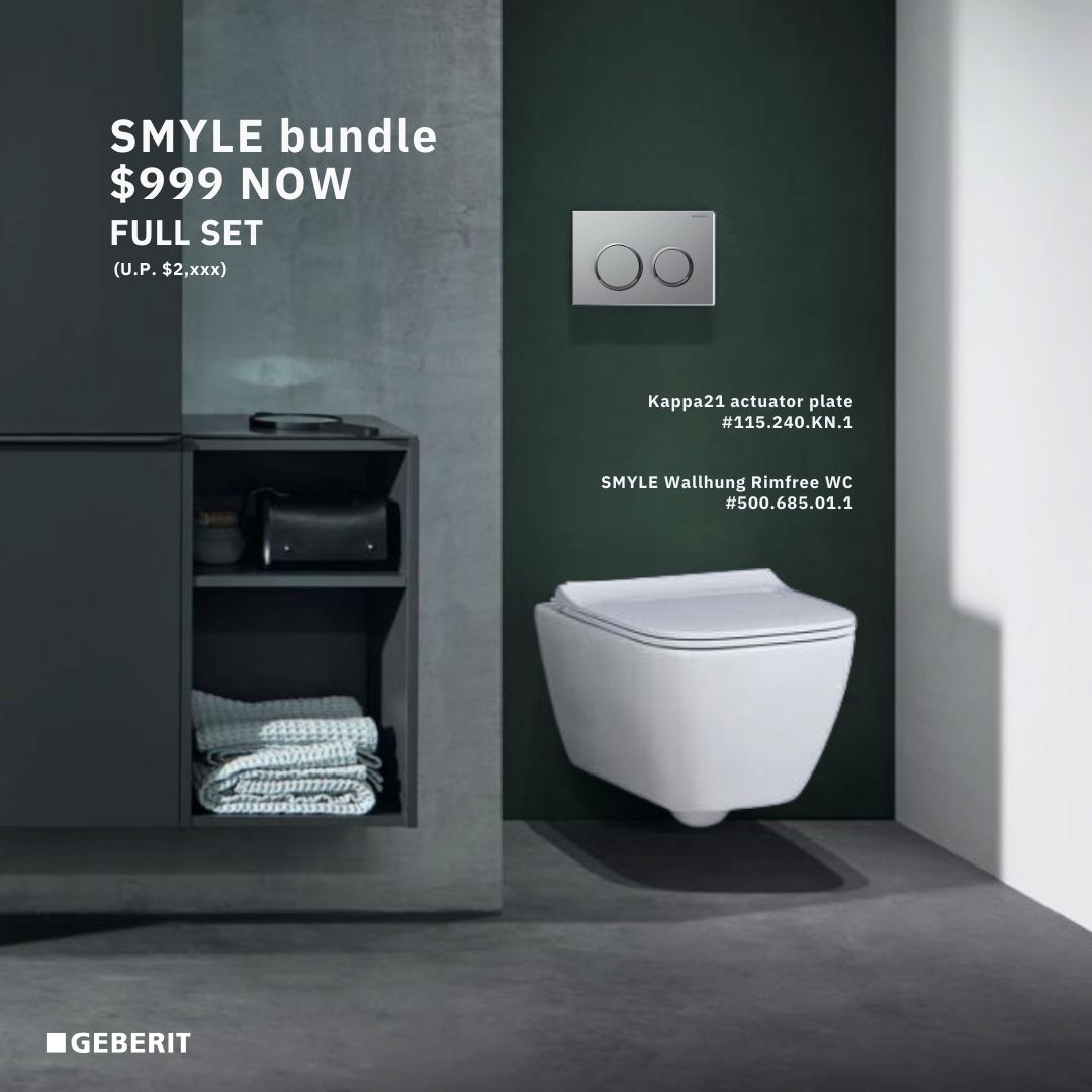 *BUNDLE SALE* Geberit Smyle Wall Hung Rimfree WC Art. 500.685.01.1 + Geberit Kappa Cistern Art. 224.361.00.1 + Geberit Kappa 21 Actuator Plate Art. 115.240.KN.1