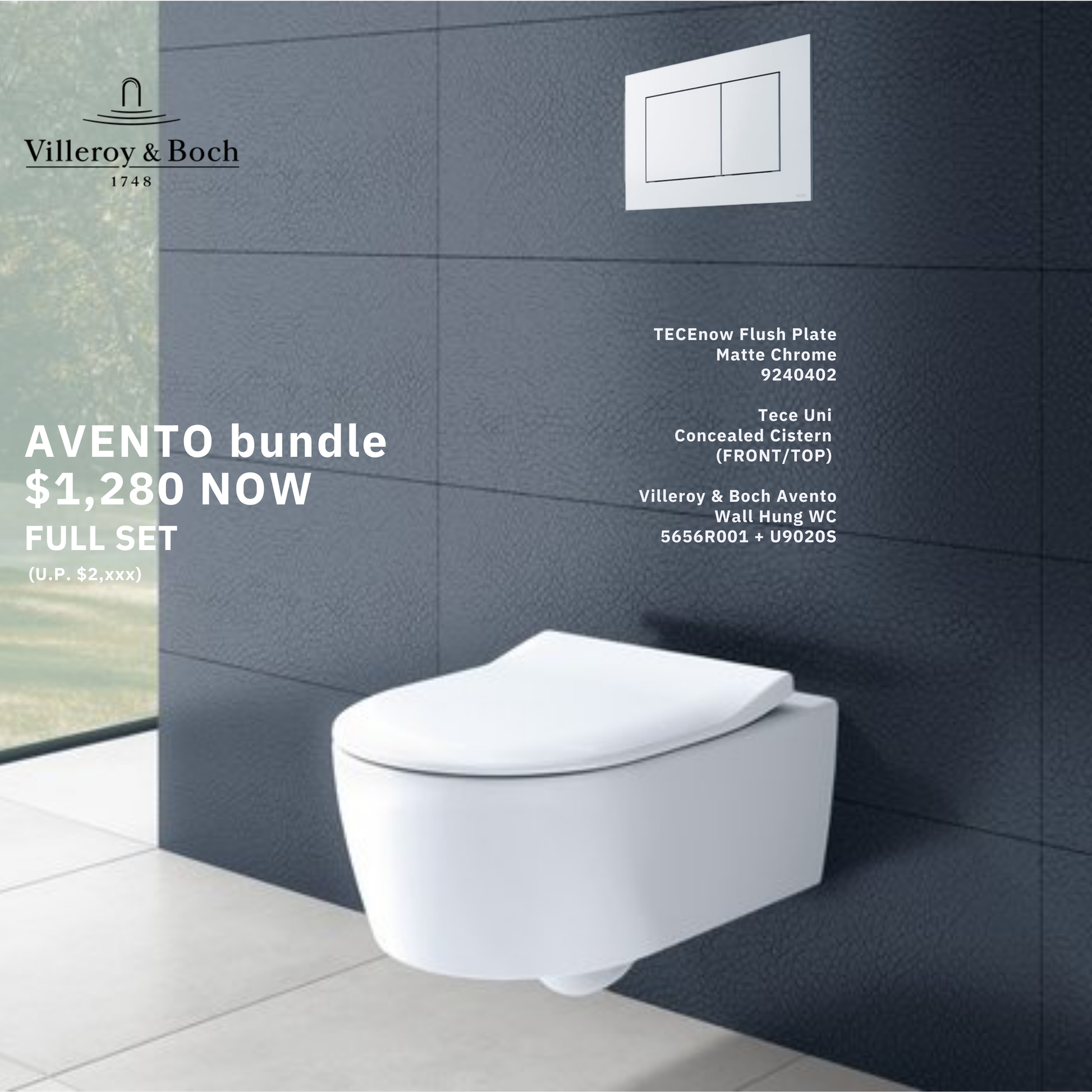 *BUNDLE SALE* Villeroy & Boch Avento Rimless Wall Hung WC Art. 5656R001 + Tece Cistern Art. 9370223 + Tece Chair Bracket 9370228 + TeceNow Flush Plate Art. 9370402