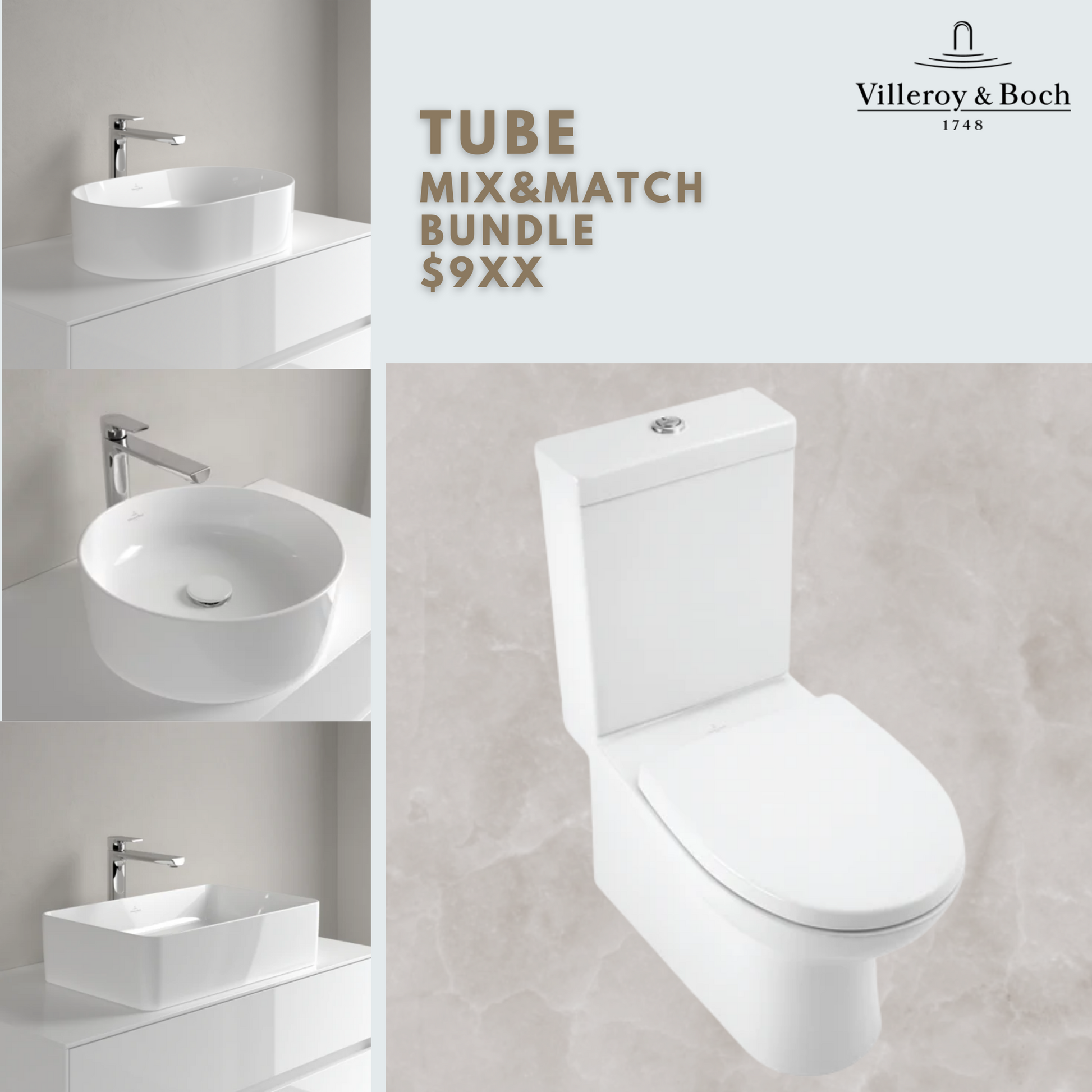 *TUBE MIX & MATCH BUNDLE* Villeroy & Boch Tube Close Coupled WC + Above Counter Basin