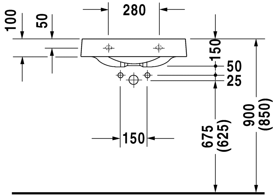 - with tap hole marked on the left, with soap dispenser hole marked on the right