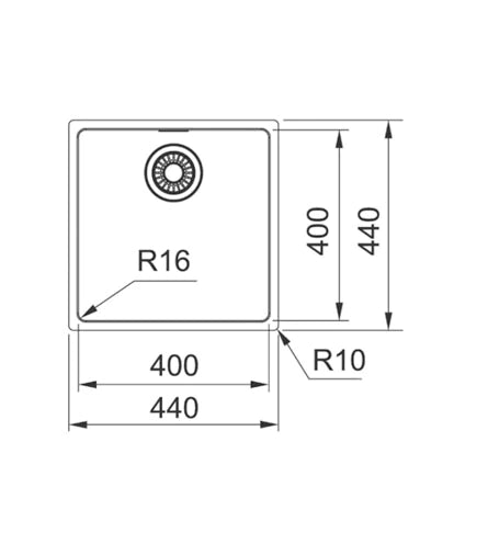 - Bowl dimensions: 440 x 400 x 200 mm, R16