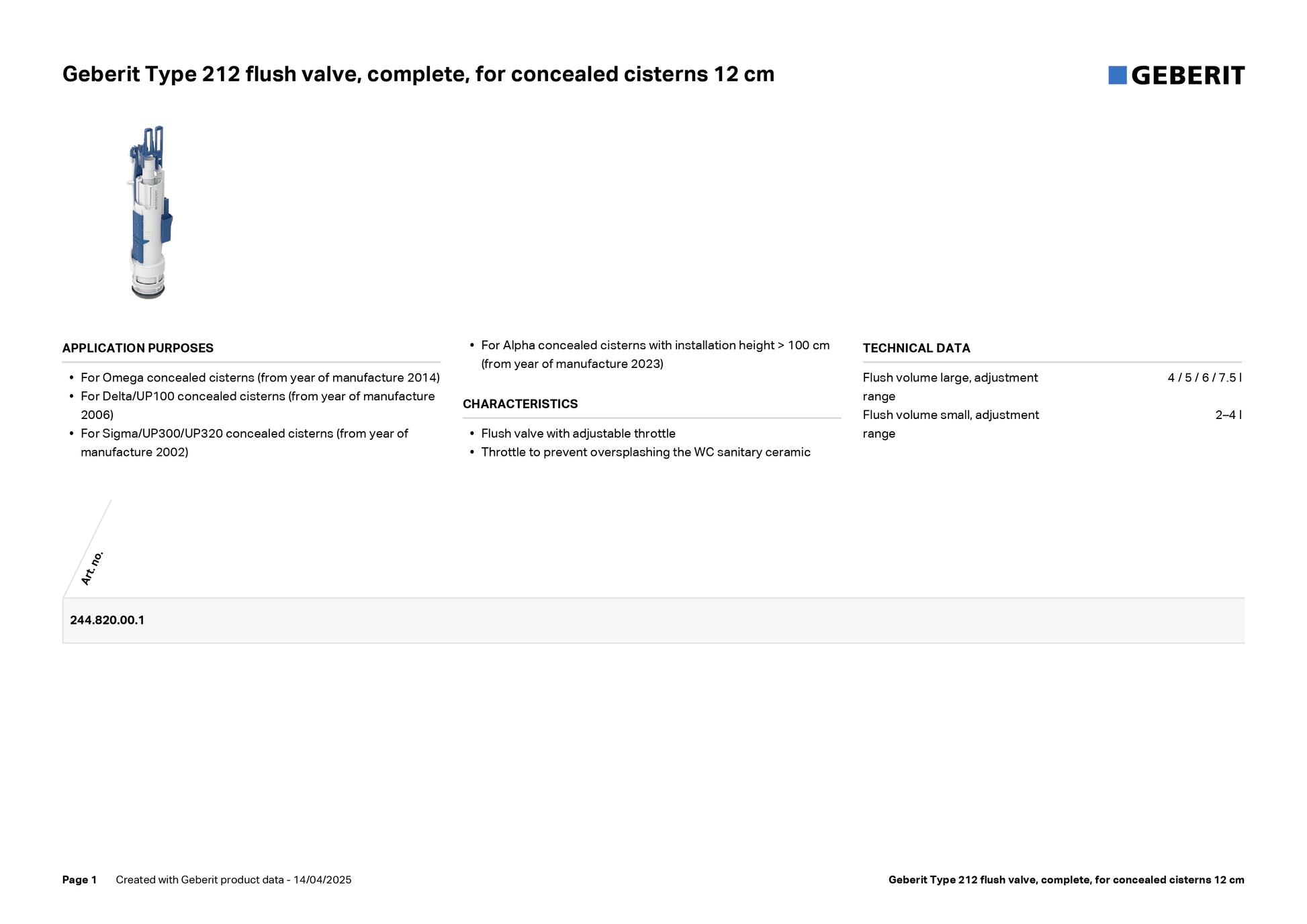 - For Omega concealed cisterns (from year of manufacture 2014)
