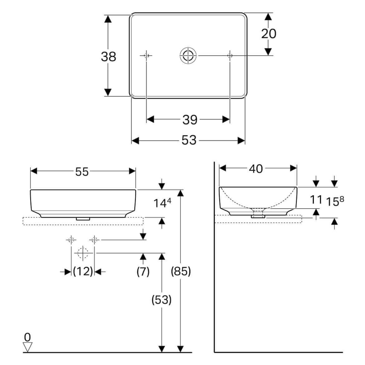Geberit "Variform" Rectangular Lay-on Basin Art. 500.779.01.2