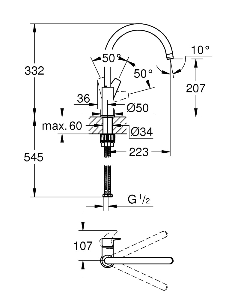 The GROHE BauEdge single-lever kitchen mixer tap is designed to go to work for you while helping to update your kitchen’s look. You’ll enjoy a clever union of can-do features and elegant styling that will transform how your kitchen looks and works. The high spout leaves the clearance beneath to wash even large pots and pans, and the spout’s smooth 360˚ swivel action offers optimum practicality and ease of use. The solid metal lever is tactile and assured, while inside the GROHE LongLife ceramic cartridge gives precise, dependable control of flow and temperature. GROHE Zero separated inner waterways mean your drinking water is safely free of lead and nickel, while the Easy Installation System with flexible connection hoses makes fitting this kitchen mixer quick and trouble free. Presented in stunning, long-lasting GROHE StarLight chrome, this kitchen tap will maintain its perfect lustre through years of use.