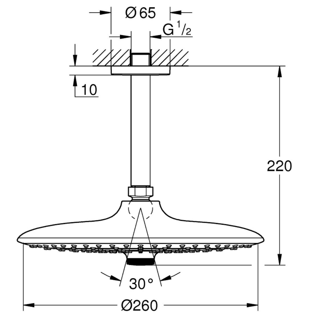 Grohe Euphoria 260 Overhead Shower with Ceiling Arm 142mm 3 Sprays Art. 26046000