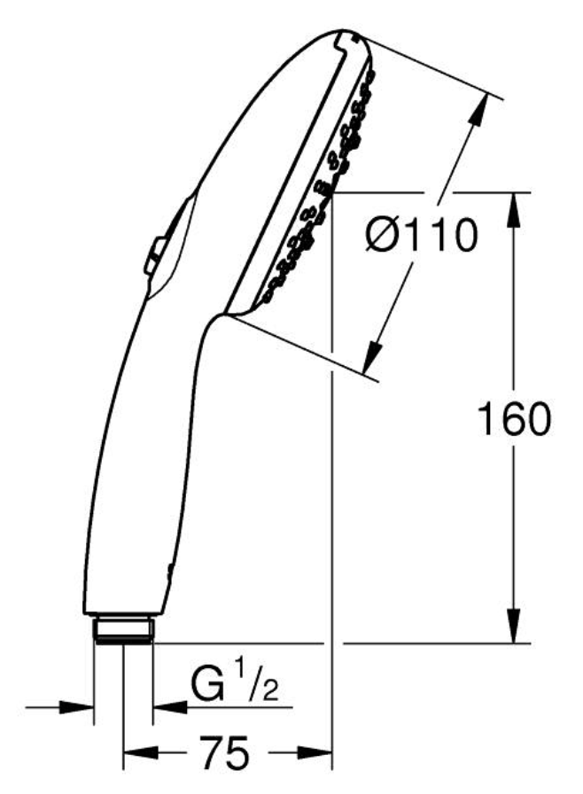 Within its slim and stylish profile the GROHE Tempesta 110 hand shower contains a world of high performance and great versatility. Its 110mm head features 3 sprays tailored to your mood: choose from soothing Rain, invigorating Massage or the focused and powerful Jet spray via the easy-to-use SmartSwitch dial on the back. GROHE DreamSpray technology ensures that the flow of water from every nozzle is equal, for a perfectly balanced spray pattern. The ShockProof silicone ring is there to prevent the hand shower itself, or the shower tray or bathtub, being damaged if it’s dropped. Its crisp good looks and premium performance will last for years – the shower features GROHE SpeedClean silicone nozzles that can be cleared of limescale and dirt with a brush of your finger, while the GROHE Long-Life finish is hard-wearing and easy to clean for a durable yet dazzling surface. And the Universal Mounting System fits all standard shower hoses, so you only have to screw the shower hose on. A minimum of 1.0 bar of pressure is recommended.