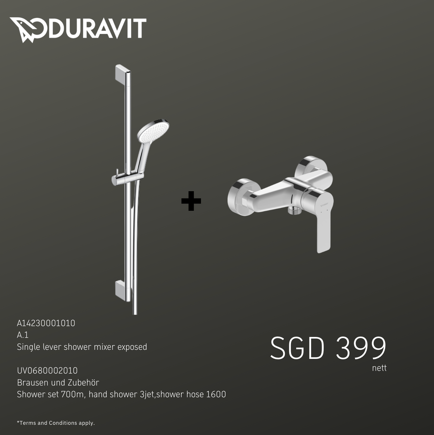 *Shower BUNDLE* Duravit A.1 Exposed Shower Mixer Art. A14230001010 + Shower Set Art. UV0680002010