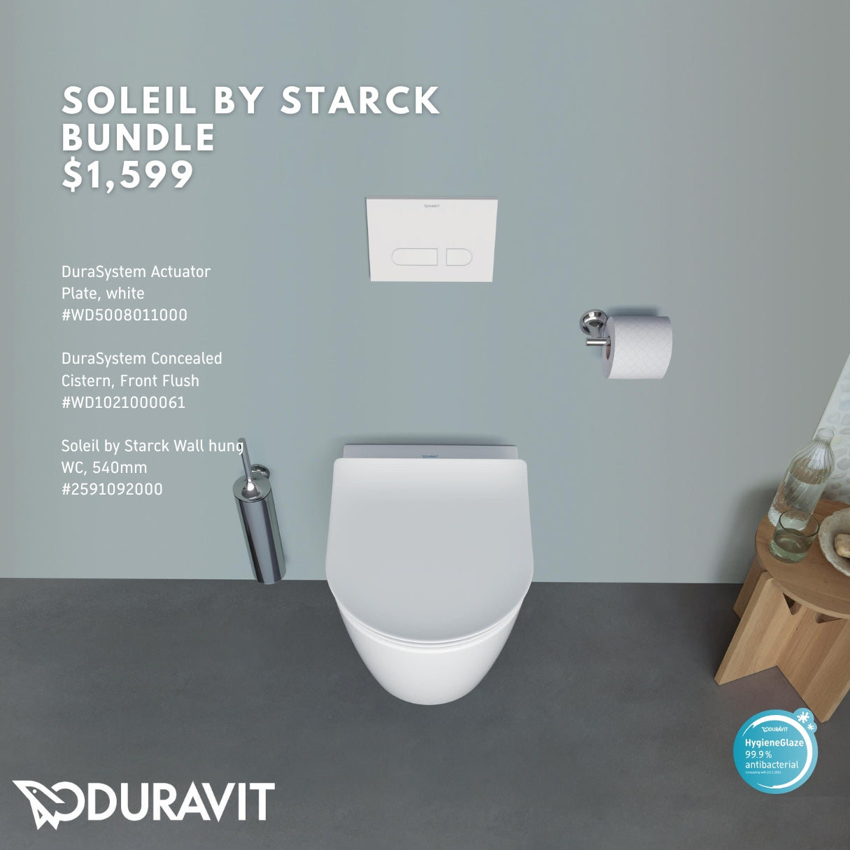 *SOLEIL BY STARCK* *Hygiene Glaze* Duravit Soleil By Starck Wall Hung WC + Durasystem Cistern + Flush Plate (White)