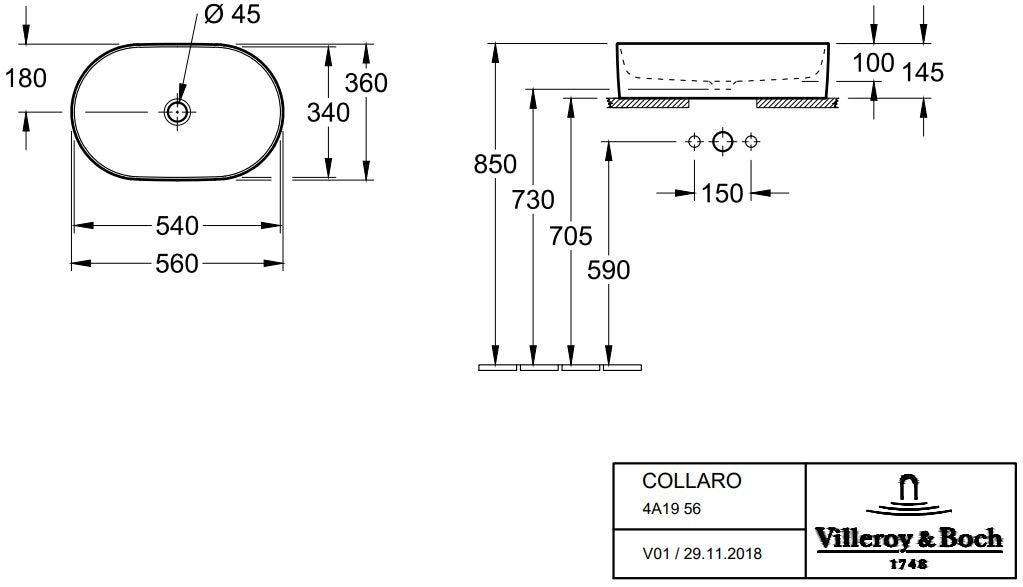 Villeroy & Boch "Collaro" Above Counter Basin Art. 4A195601