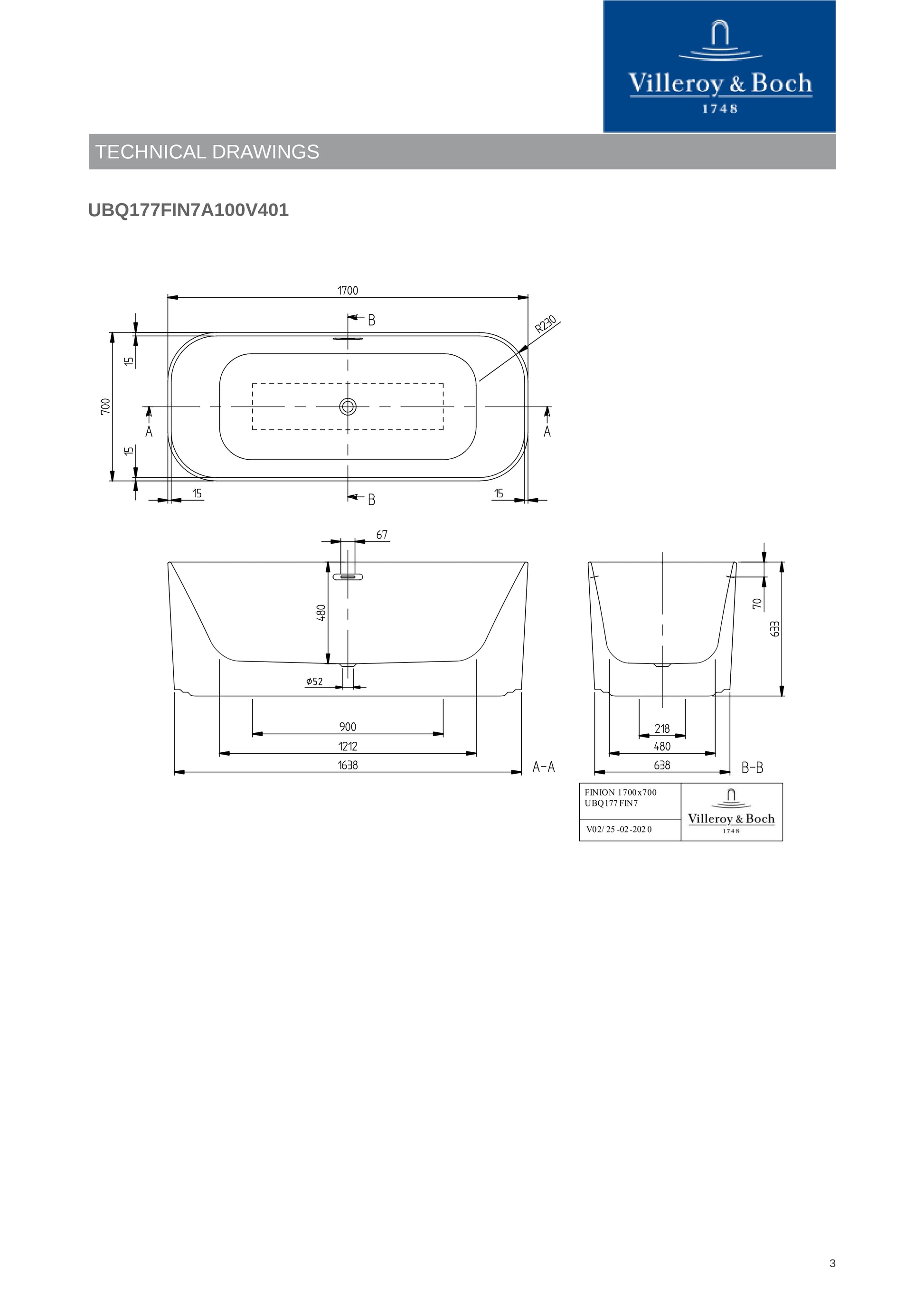 Installation heightBath: 633 - 633 mm