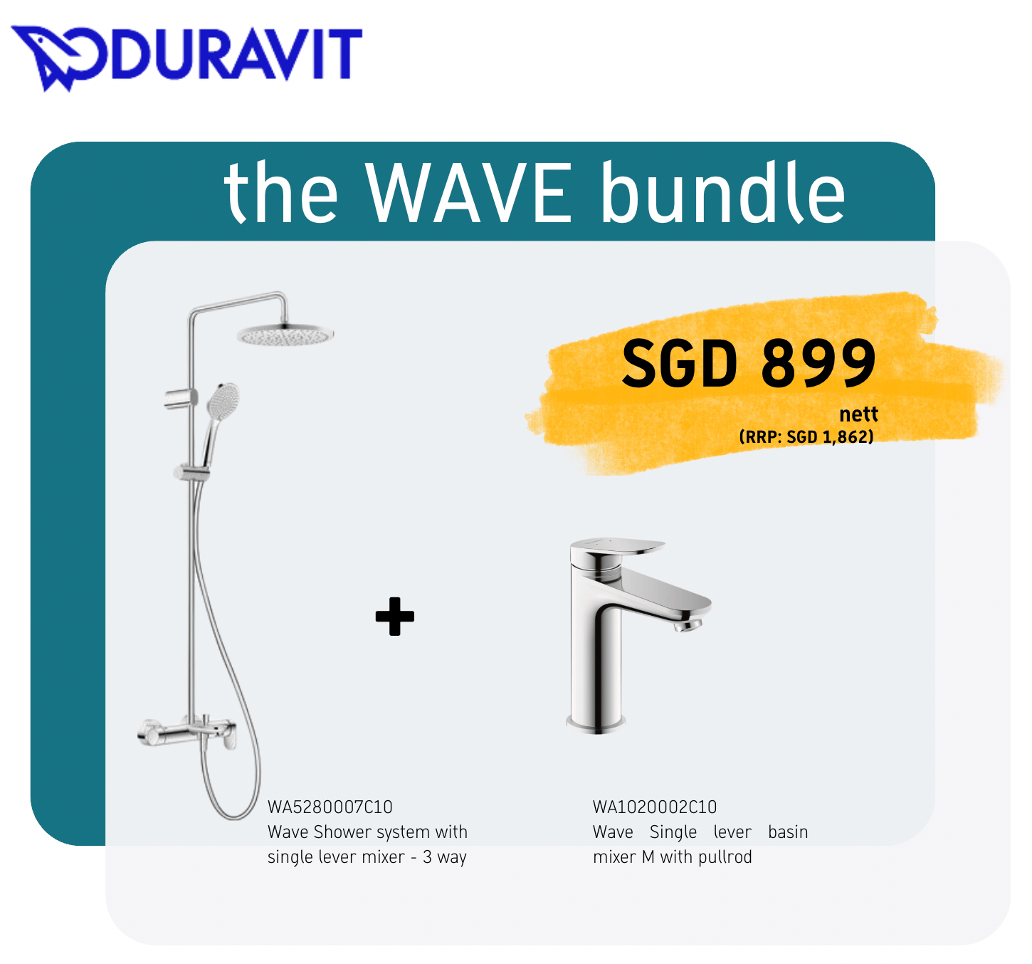 *WAVE BUNDLE* Duravit WAVE Shower System 3 Way Art. WA5280007 + WAVE M Basin Mixer Art. WA1020002