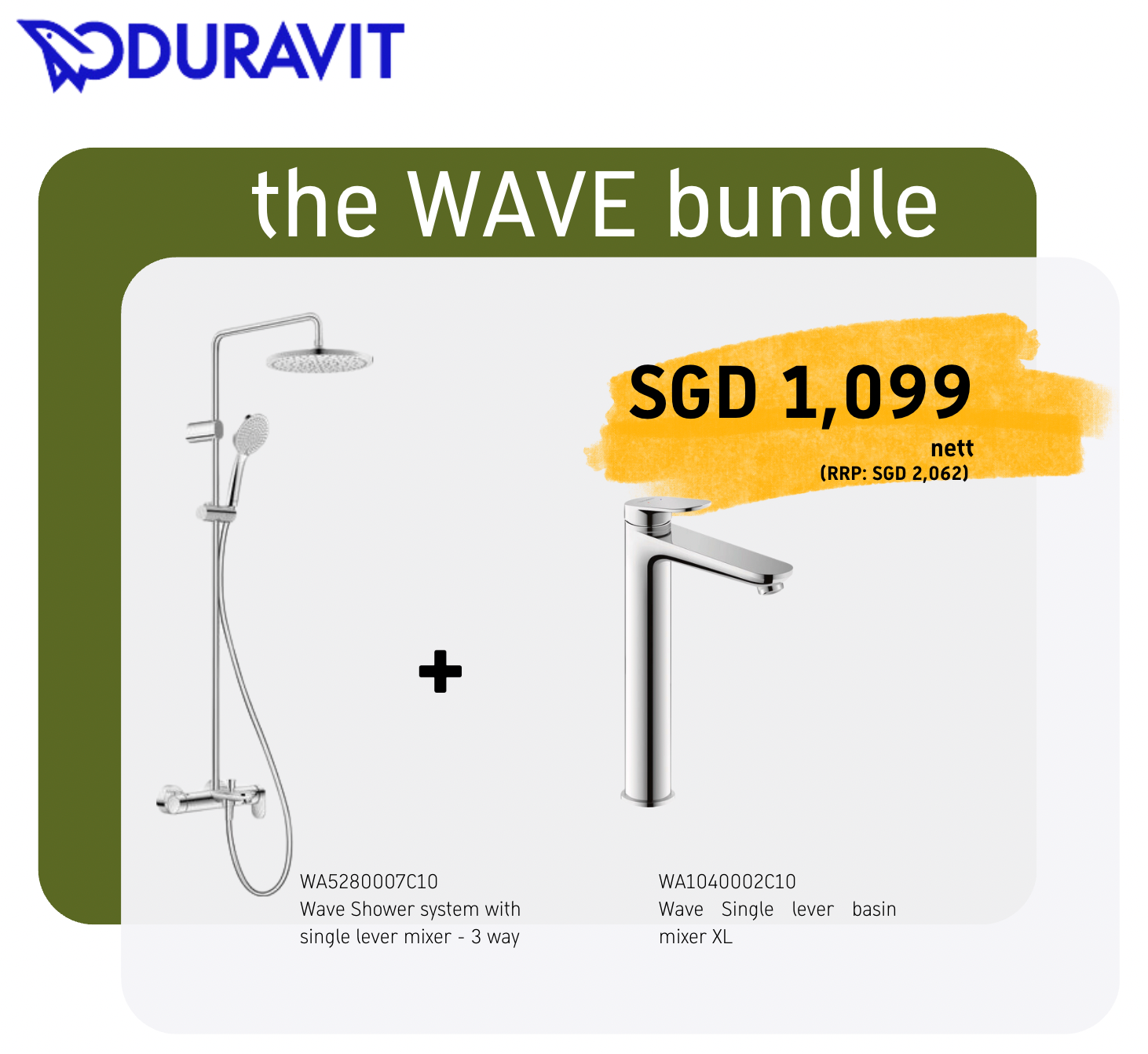 *WAVE BUNDLE* Duravit WAVE Shower System 3 Way Art. WA5280007 + WAVE XL Basin Mixer Art. WA1040002